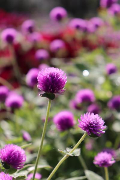道路を挟んで向かいにあるエリアは濃いピンク色のセンニチコウがにぎやかに咲いています。